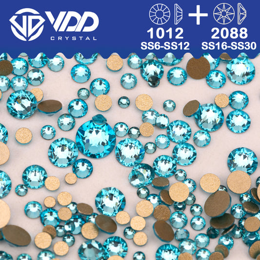 VDD 026 Blue Zircon SS16-SS30 High Quality Hot-Fix Glass 2088 Rhinestones Crystal Flatback 8 Big 8 Small DIY Clothes Decoration