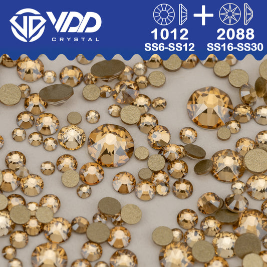 VDD 058 Golden Shadow SS6-SS30 Top Quality AAAAA Hot-Fix 2088 Glass Rhinestones Crystal Flatback 8 Big 8 Small Glitter Stones DIY Clothes Garment