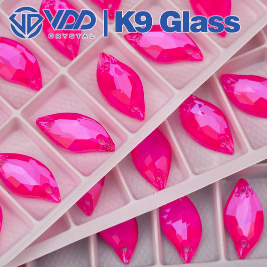 VDD 10x20mm Leaf K9 Top Quality Neon Rose Glass Sew on Rhinestones Sewing Crystal Flat Back Stones for Clothes Dress Decorations