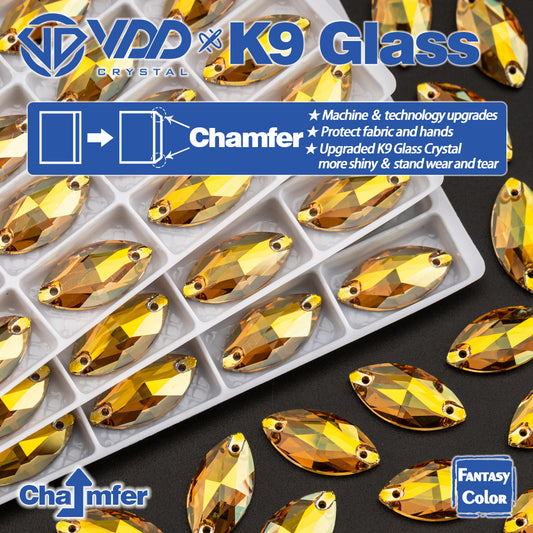 VDD Navette 9x18mm 36Pcs Sunshine Color K9 Glass Sew on Rhinestones Sewing Crystals Flat Back Stones for Clothes Accessories