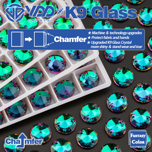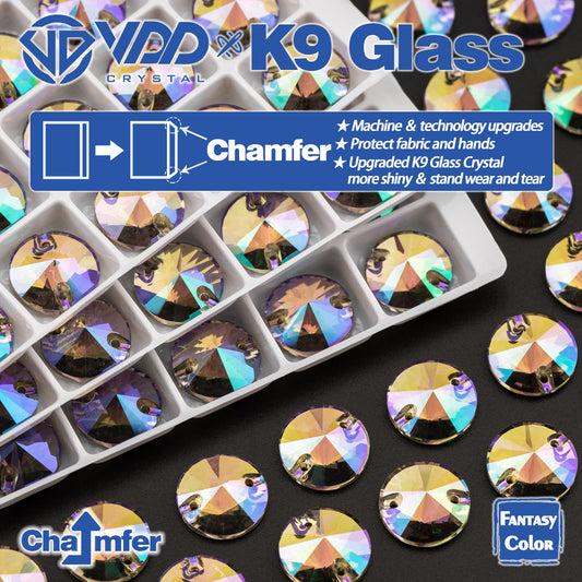 VDD Rivoli 12mm 40Pcs Chroma Shimmer Color Top Quality K9 Glass Sew on Rhinestone Sewing Crystal Flatback Clothes Decorations