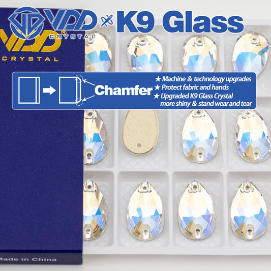VDD S256 Moonlight Pear Top Quality K9 Glass Sew on Rhinestones Crystal Flatback Sewing Strass Stones for DIY Garment Decorations