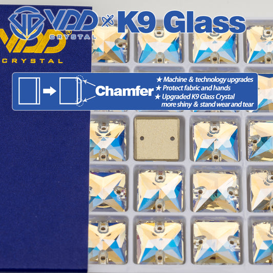 VDD S256 Moonlight Square Top Quality K9 Glass Sew on Rhinestones Crystal Flatback Sewing Stones for Clothes Decorations