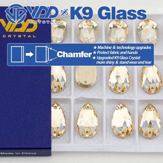 VDD S257 Golden Shadow Pear Top Quality K9 Glass Sew on Rhinestones Crystal Flatback Sewing Strass Stones for DIY Garment Decorations