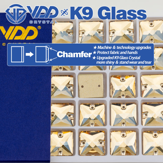 VDD S257 Golden Shadow Square Top Quality K9 Glass Sew on Rhinestones Crystal Flatback Sewing Stones for Clothes Decorations