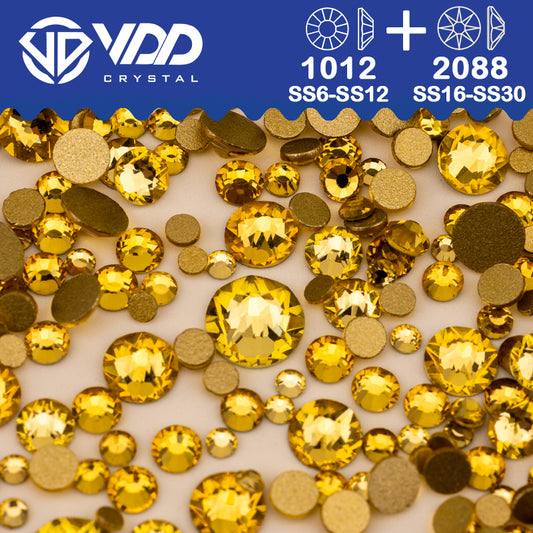 VDD 005 Citrine Wholesale Mix Size SS6-SS30 High Quality Glass 2088 Rhinestones Crystal Gold Flatback Strass Stones Nail Art DIY Decorations