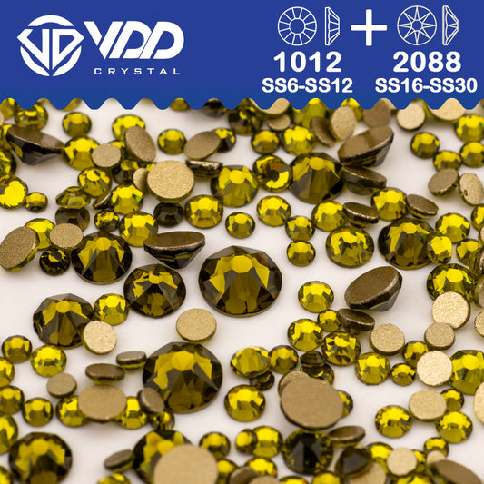 VDD 021 Olivine Wholesale Mix Size SS6-SS30 High Quality Glass 2088 Rhinestones Crystal Gold Flatback Strass Stones Nail Art DIY Decorations