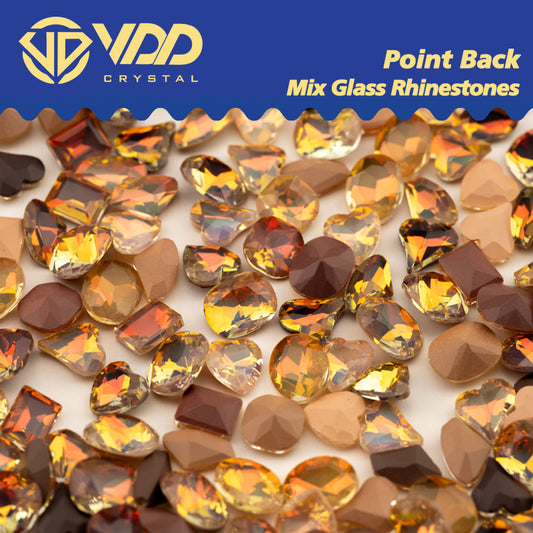VDD Champagne 30/60Pcs Mix Shape Glass Fancy Pointback Rhinestone Crystal Glitter Shiny Stones Nail Art Accessories DIY Crafts Decoration