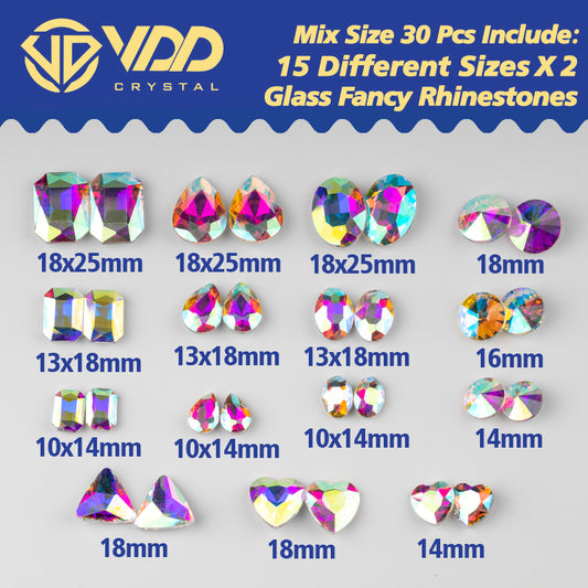 VDD AB Color 30/60Pcs Mix Shape Glass Fancy Pointback Rhinestone Crystal Glitter Shiny Stones Nail Art Accessories DIY Crafts Decoration