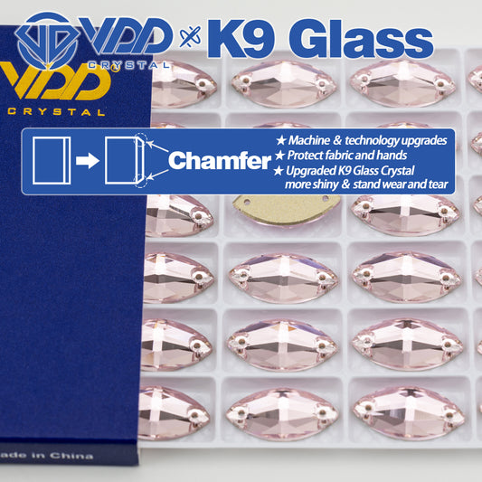 VDD S121 Light Rose Navette Top Quality K9 Glass Sew on Rhinestones Crystal Flatback Sewing Strass Stones for Garment Decorations