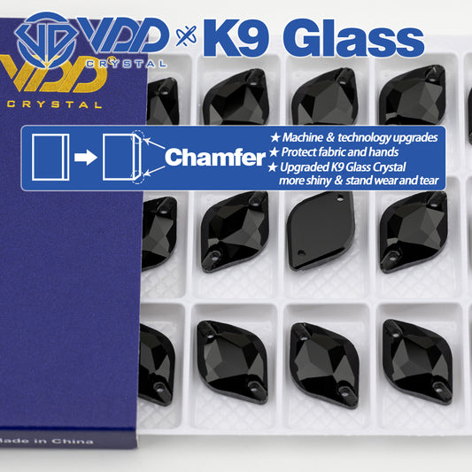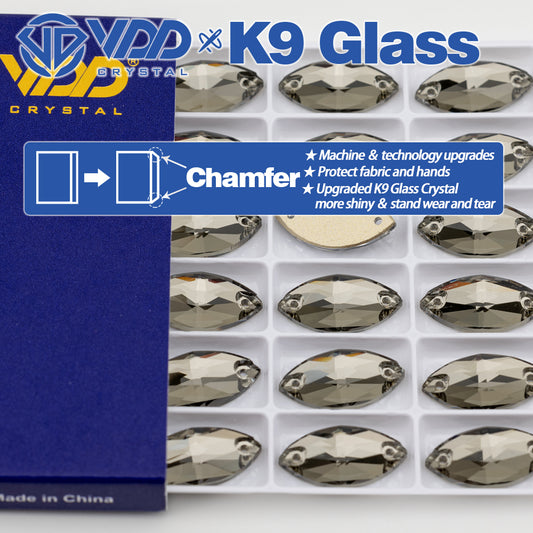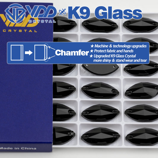 VDD S103 Black Diamond Navette Top Quality K9 Glass Sew on Rhinestones Crystal Flatback Sewing Strass Stones for Garment Decorations