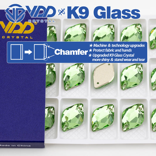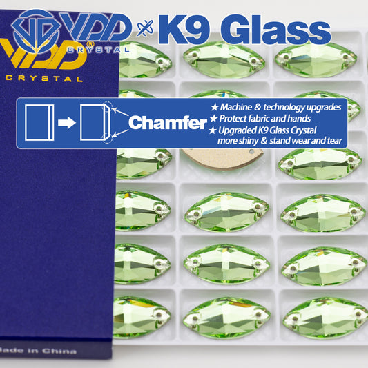 VDD S112 Lt.Peridot Navette Top Quality K9 Glass Sew on Rhinestones Crystal Flatback Sewing Strass Stones for Garment Decorations