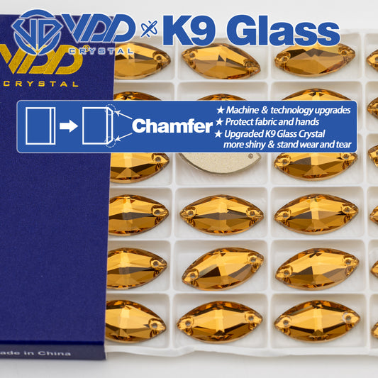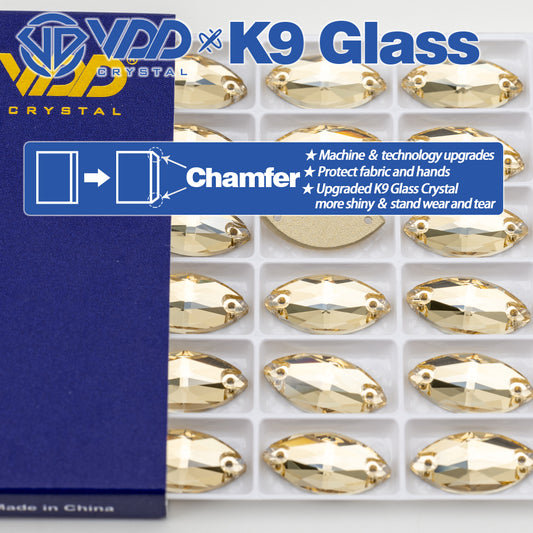 VDD S257 Golden Shadow Navette Top Quality K9 Glass Sew on Rhinestones Crystal Flatback Sewing Strass Stones for Garment Decorations