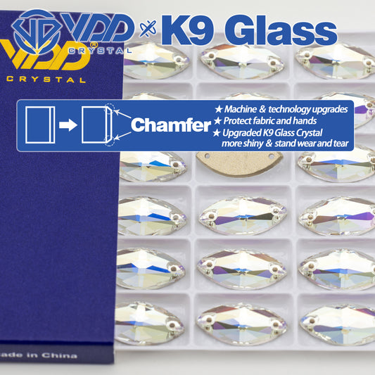 VDD S256 Moonlight Navette Top Quality K9 Glass Sew on Rhinestones Crystal Flatback Sewing Strass Stones for Garment Decorations
