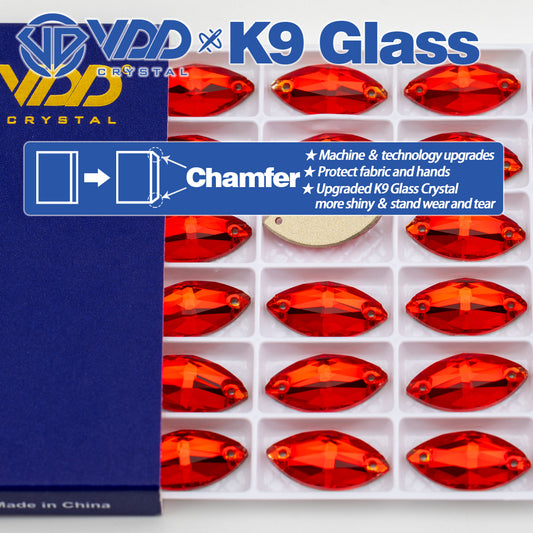 VDD S109 Siam Navette Top Quality K9 Glass Sew on Rhinestones Crystal Flatback Sewing Strass Stones for Garment Decorations