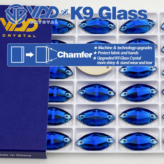 VDD S118 Sapphire Navette Top Quality K9 Glass Sew on Rhinestones Crystal Flatback Sewing Strass Stones for Garment Decorations