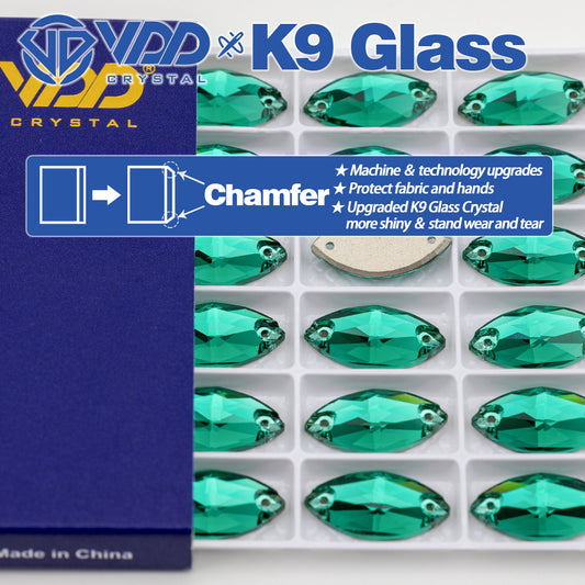 VDD S114 Green Zircon Navette Top Quality K9 Glass Sew on Rhinestones Crystal Flatback Sewing Strass Stones for Garment Decorations