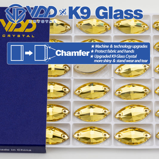 VDD S104 Jonquil Navette Top Quality K9 Glass Sew on Rhinestones Crystal Flatback Sewing Strass Stones for Garment Decorations