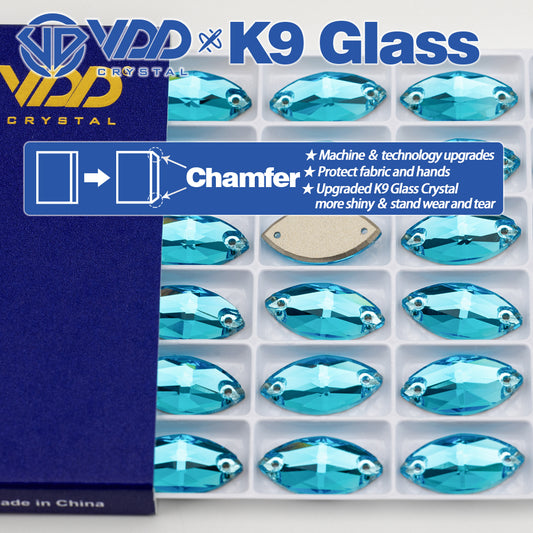 VDD S116 Aqua Blue Navette Top Quality K9 Glass Sew on Rhinestones Crystal Flatback Sewing Strass Stones for Garment Decorations