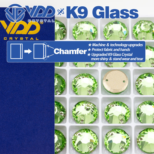VDD S112 Lt.Peridot 8 Big 8 Small Top Quality K9 Glass Sew on Rhinestones Crystal Flatback Sewing Stones for Clothes Decorations