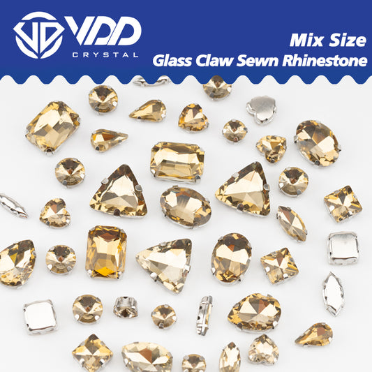 VDD Tawny Multi Shape Mix Size Glass Sew on Rhinestones Crystal Flatback Stones For DIY Shoes Accessories