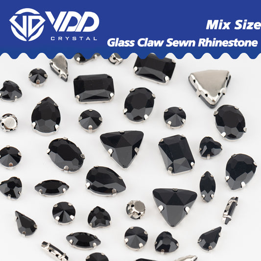 VDD Black Diamond Multi Shape Mix Size Glass Sew on Rhinestones Crystal Flatback Stones For DIY Shoes Accessories