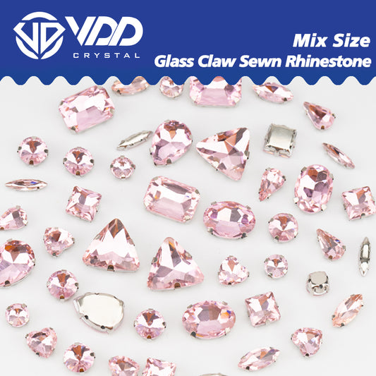 VDD Light Rose Multi Shape Mix Size Glass Sew on Rhinestones Crystal Flatback Stones For DIY Shoes Accessories