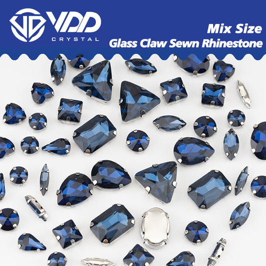 VDD Sapphire Multi Shape Mix Size Glass Sew on Rhinestones Crystal Flatback Stones For DIY Shoes Accessories