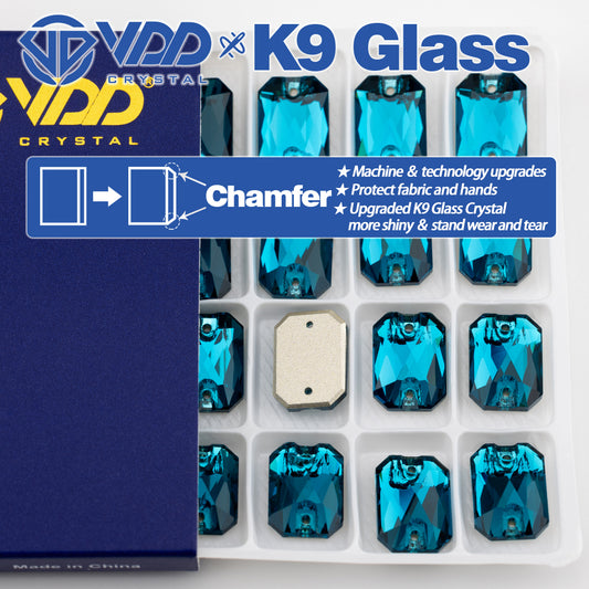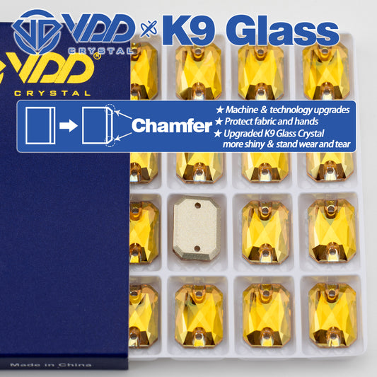 VDD S258 Sunshine Emerald Cut Top Quality K9 Glass Sew on Rhinestones Crystal Flatback Sewing Stones for Clothes Decorations
