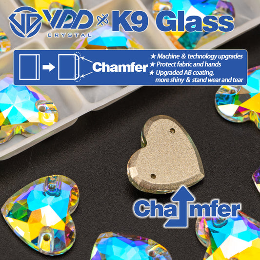 VDD Heart Top Quality K9 Glass Sew on Rhinestones Sewing Crystal AB Flat Back Strass Stones for Clothes Accessories Crafts