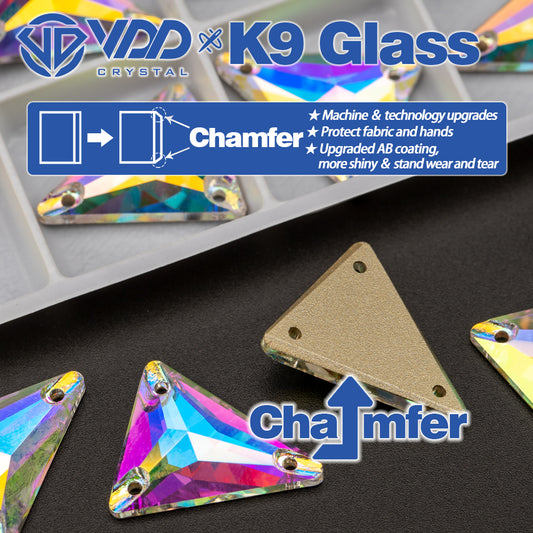 VDD Triangle High Quality K9 Glass Sew on Rhinestones Sewing Crystals AB Flat Back Stones for Clothes Crafts Wedding Dress