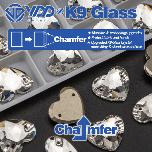VDD Heart High Quality K9 Glass Sew on Rhinestones Sewing Clear Crystals Flat Back Stones for Clothes Accessories Wedding Dress