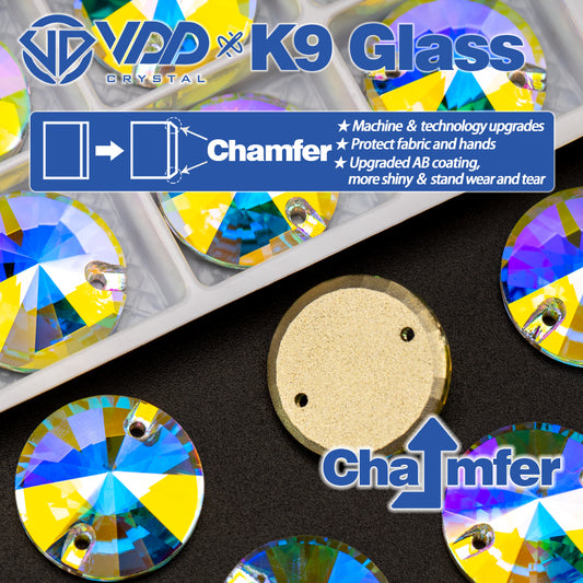 VDD Rivoli Top Quality K9 Glass Sew on Rhinestone Sewing Crystal AB Flatback Strass Stones for Craft Clothes Wedding Dress