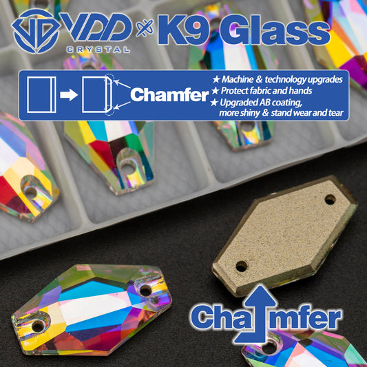 VDD Hexagon Top Quality K9 Glass Sew on Rhinestones Sewing Crystal AB Flatback Strass Stones for Clothes Craft Accessories
