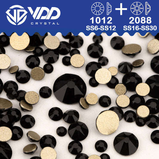 VDD 002 Jet Wholesale Mix Size SS6-SS30 High Quality Glass 2088 Rhinestones Crystal Gold Flatback Strass Stones Nail Art DIY Decorations