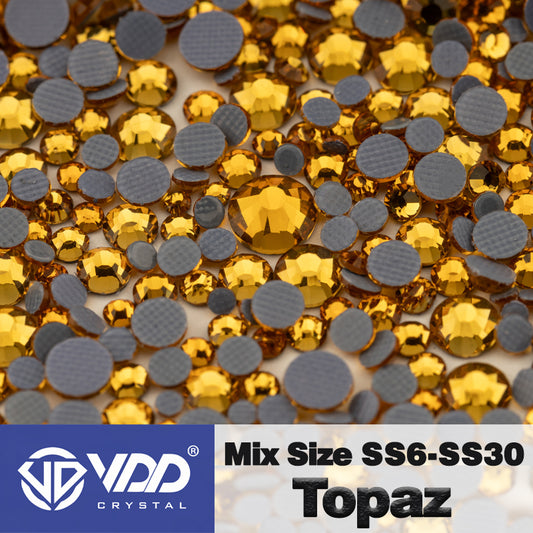 VDD 006 Topaz Wholesale SS6-SS30 Hotfix Mix Size Glass Rhinestone Crystal Flat Back High Quality Strass Stones For DIY Clothes Accessories