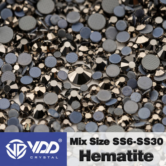 VDD 065 Hematite Wholesale SS6-SS30 Hotfix Mix Size Glass Rhinestone Crystal Flat Back High Quality Strass Stones For DIY Clothes Accessories