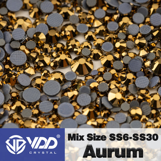 VDD 067 Aurum Wholesale SS6-SS30 Hotfix Mix Size Glass Rhinestone Crystal Flat Back High Quality Strass Stones For DIY Clothes Accessories