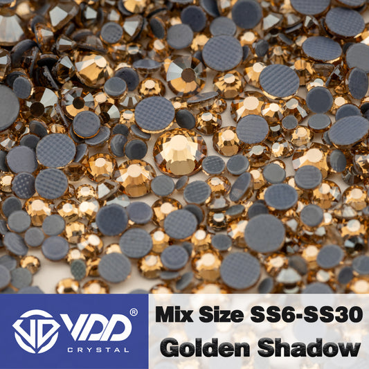 VDD 058 Golden Shadow Wholesale SS6-SS30 Hotfix Mix Size Glass Rhinestone Crystal Flat Back High Quality Strass Stones For DIY Clothes Accessories