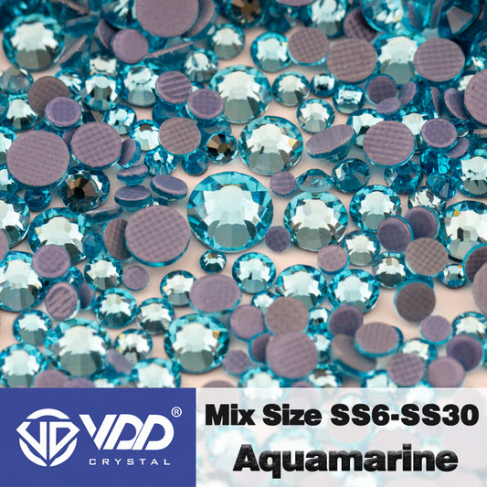 VDD 027 Aquamarine Wholesale SS6-SS30 Hotfix Mix Size Glass Rhinestone Crystal Flat Back High Quality Strass Stones For DIY Clothes Accessories