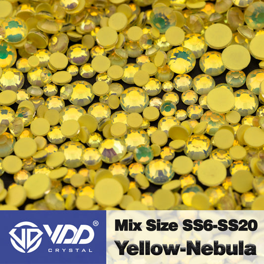 VDD 406 Yellow-Nebula Wholesale New Neon Color Mix Size SS6-SS20 Glass Rhinestones Crystal High Quality Flatback Stones DIY Nail Art Decorations