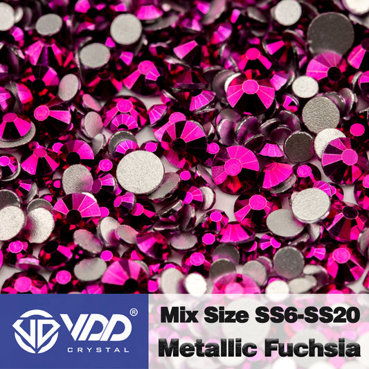 VDD 161 Metallic Fuchsia Mix Size SS6-SS20 High Quality Glass Rhinestones Crystal Flatback Glitter Stones Nail Art DIY Crafts Decorations