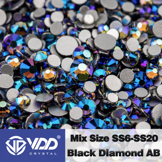 VDD 076 Black Diamond AB Mix Size SS6-SS20 High Quality Glass Rhinestones Crystal Flatback Glitter Stones Nail Art DIY Crafts Decorations