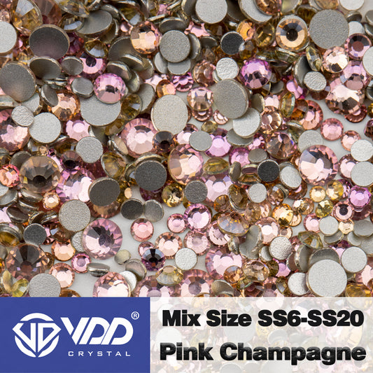 VDD 121 Pink Champagne Mix Size SS6-SS20 High Quality Glass Rhinestones Crystal Flatback Glitter Stones Nail Art DIY Crafts Decorations