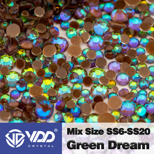 VDD 122 Green Dream Mix Size SS6-SS20 High Quality Glass Rhinestones Crystal Flatback Glitter Stones Nail Art DIY Crafts Decorations