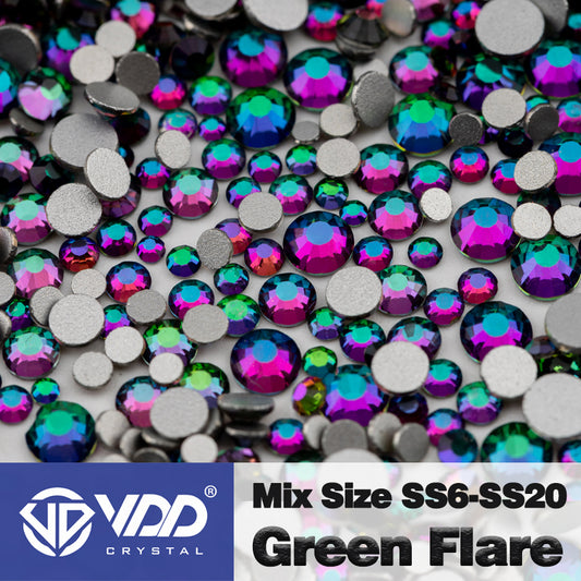 VDD 064 Green Flare Mix Size SS6-SS20 High Quality Glass Rhinestones Crystal Flatback Glitter Stones Nail Art DIY Crafts Decorations