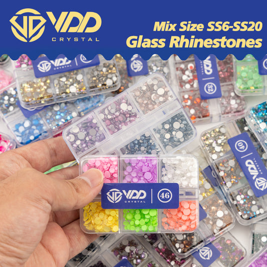 VDD DC-046 SS6-SS20 Mix Size 6 Grid Box Glass Rhinestones Crystal Flatback Glitter Stones For Nail Art Accessorie DIY Crafts Decoration