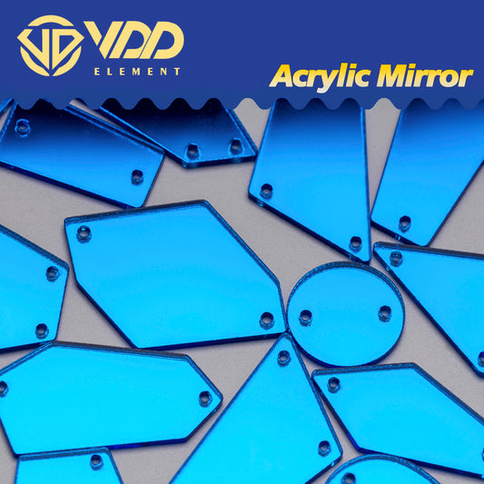 VDD 30/60/200Pcs Mix Size Blue Acrylic Mirror Sewing Rhinestones Sew On DIY Crafts Flat Back Stones For Garment Decorations